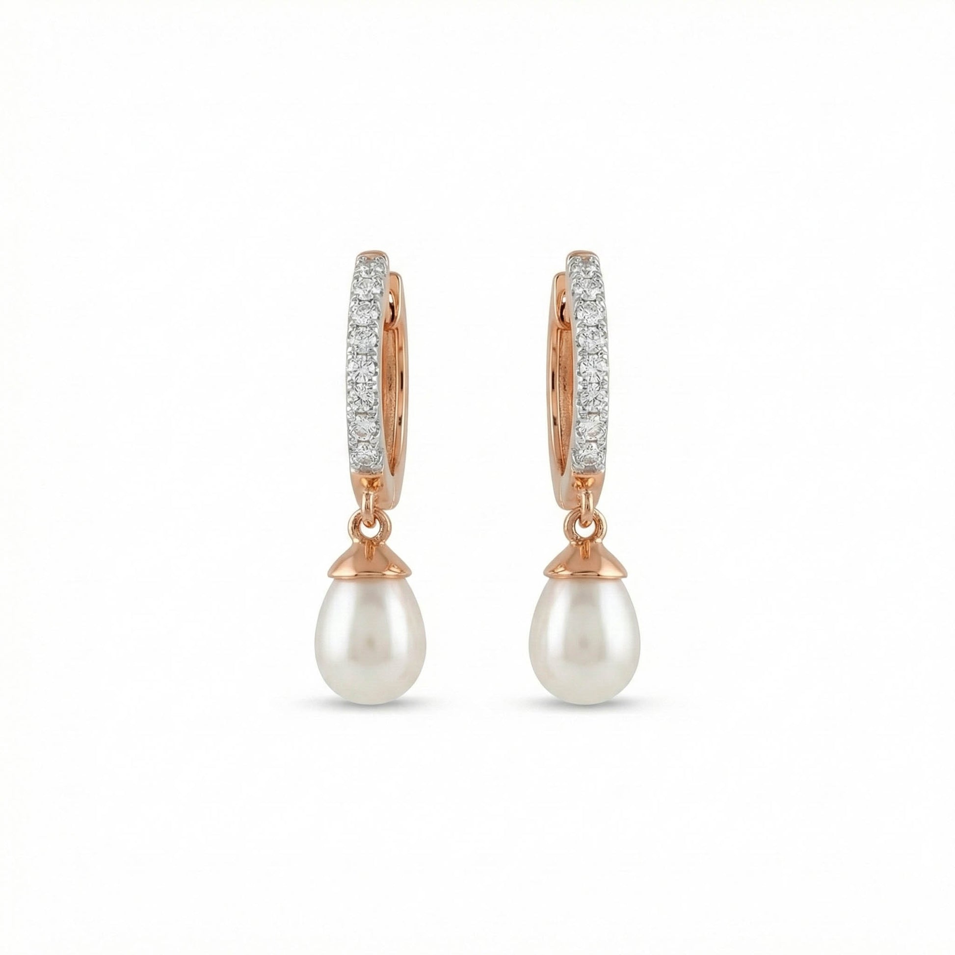 Enhance your jewelry collection with our Diamond Hoops featuring Hanging Teardrop White Pearls. Order now and experience the unparalleled beauty and craftsmanship of these stunning earrings.