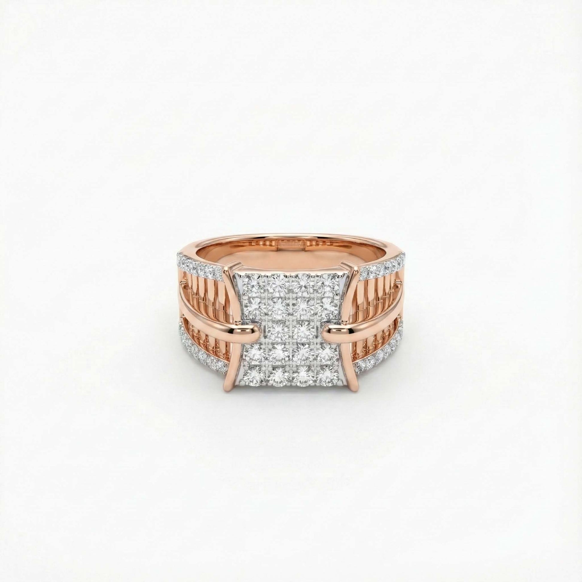 This striking piece combines contemporary elegance with rugged masculinity, making it an ideal accessory for the modern man. The ring is crafted from premium materials and showcases brilliance of diamonds. The centerpiece of the ring is designed with multiple diamonds, known for its exceptional clarity and brilliance. The band features a unique textured finish that adds depth and character to the ring. This ring complements any outfit and adds a touch of elegance to your look.