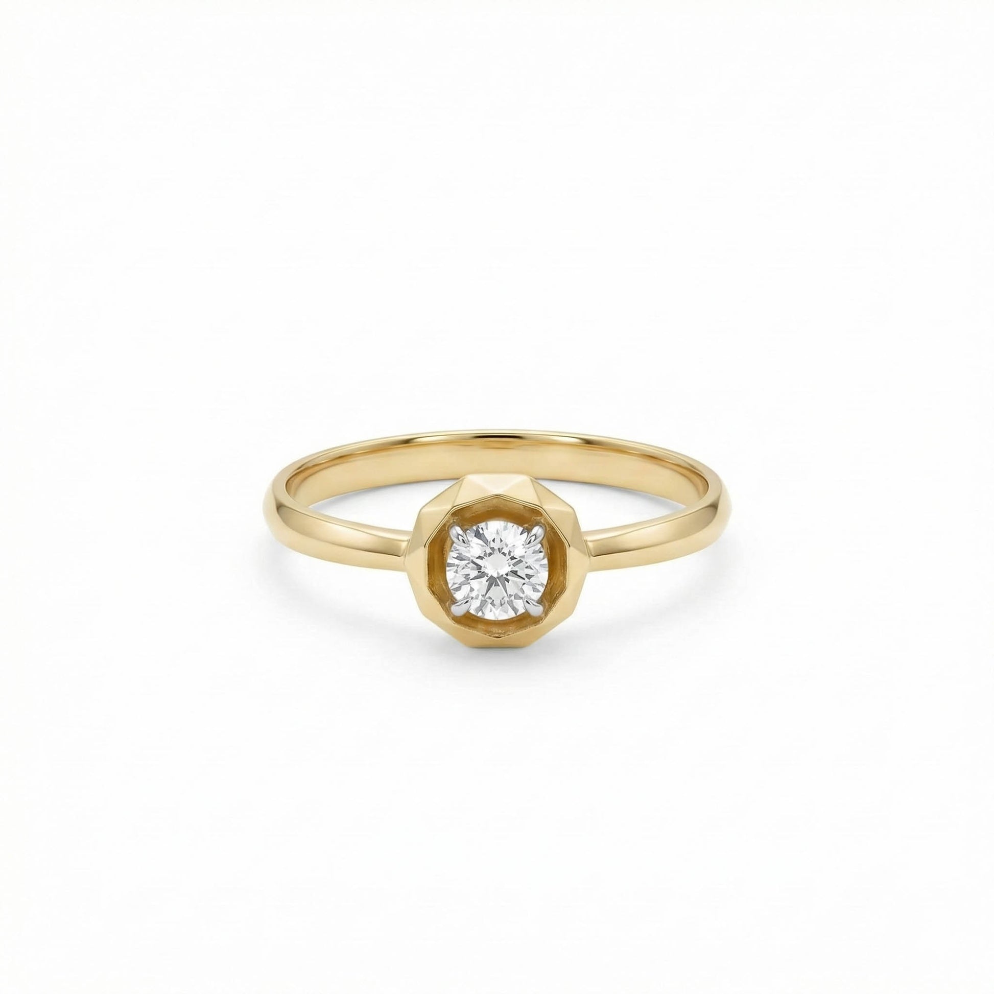 The centerpiece of this ring is a mesmerizing round LGD solitaire, renowned for its classic shape and exceptional brilliance. Crafted from the finest gold, the band features a smooth, polished finish that exudes luxury. This delicate ring is perfect for any occasion, from engagements and anniversaries to everyday wear.