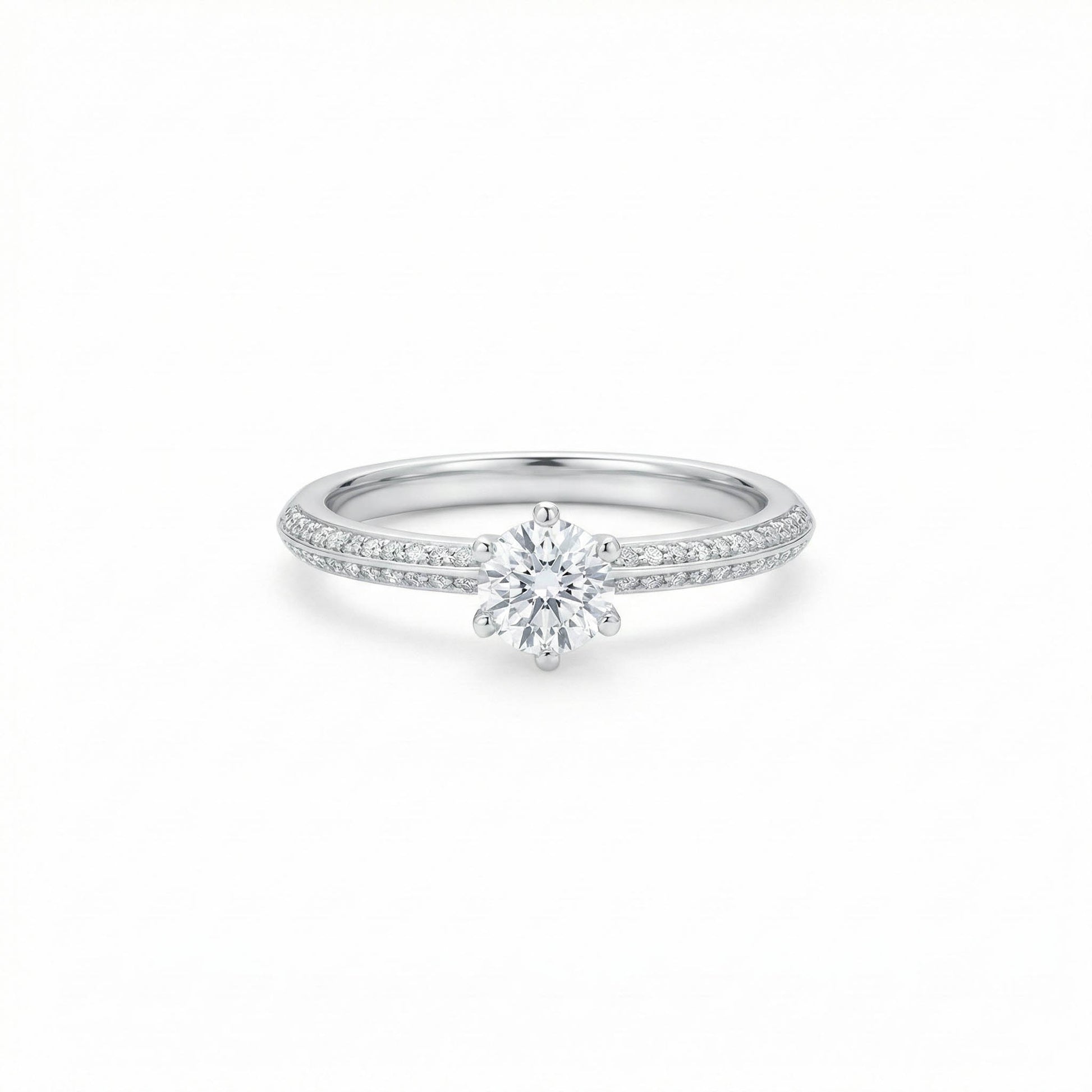 This exquisite ring is meticulously crafted to perfection, making it the ideal choice for special occasions or as a breathtaking engagement ring. A single, dazzling solitaire diamond takes center stage, captivating with its exceptional clarity and brilliance. The elegant shank of the ring is adorned with a series of smaller, meticulously set diamonds, adding an extra layer of sparkle and enhancing the overall glamour of the ring. Perfect for Engagements, anniversaries, Milestone celebrations, any special occasion where you want to make a lasting impression.